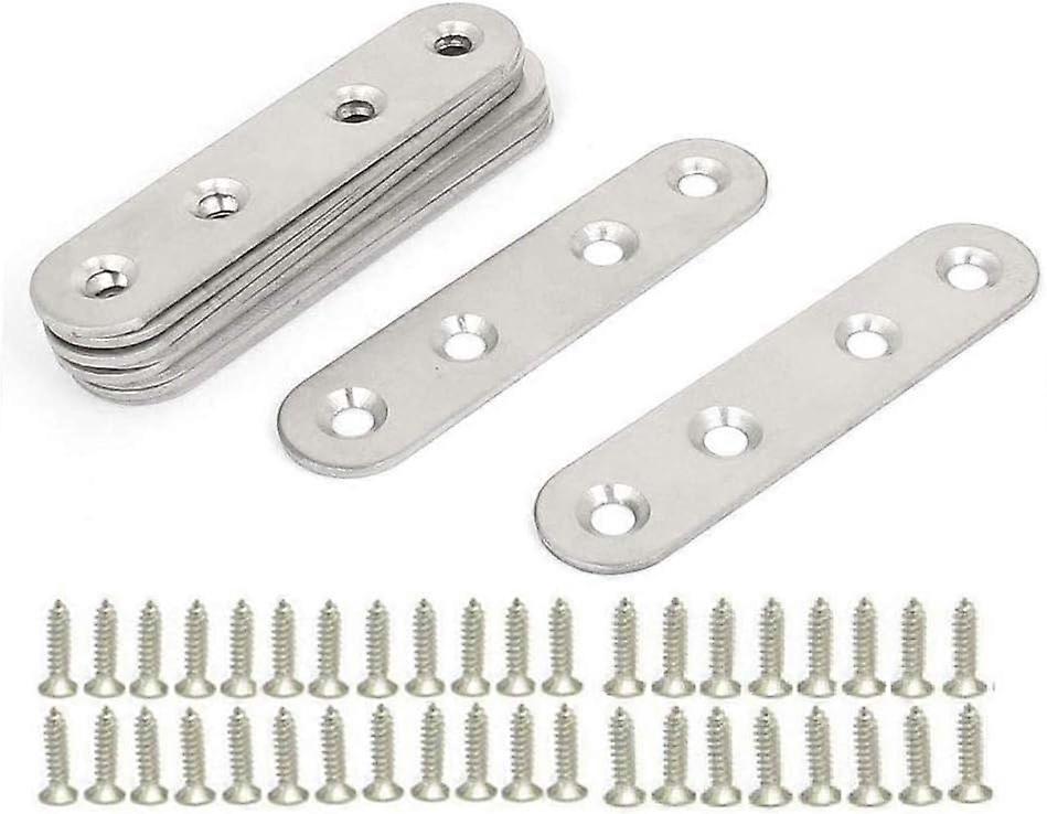Stainless Steel Flat Brackets, 10 Pieces Metal Assembly Legs, Flat Straight Fixing Brackets, Metal Plates Flat Corner Brackets, with 40 Screws, for Re