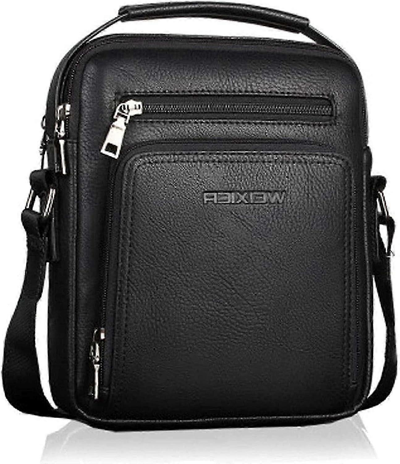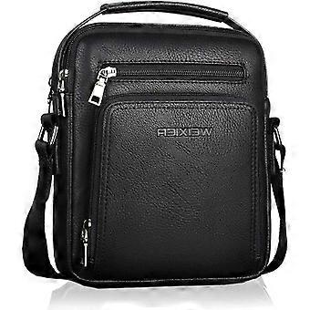 Leather Messenger Bag Men's Crossbody Bags Vintage Shoulder Bag Business Satchel Laptop Bag for Travel Hiking and Working-Black---Black-