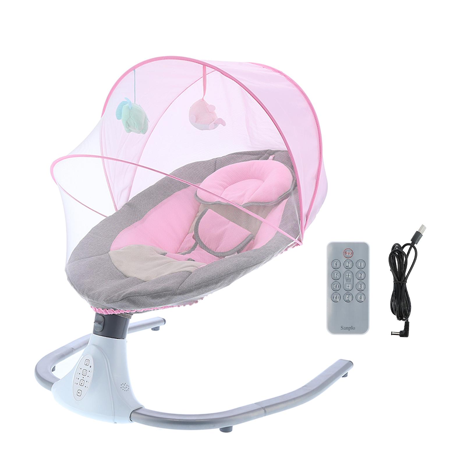 Infant Baby Electric Bassinet Newborn Soothing Swing Crib with USB Plug and Remote Control Pink Comfortable Safe Sleep