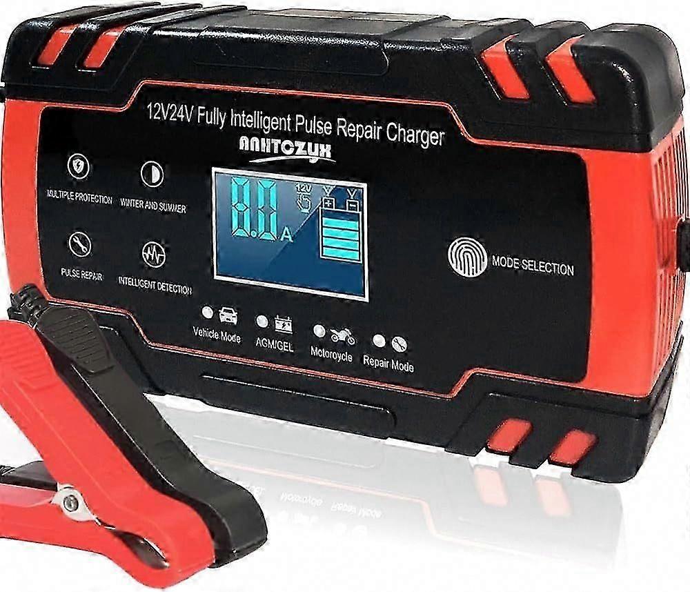 12V/24V 8Amp Car Battery Charger, with Intelligent Charges, Repairs, Maintains Lead Acid Batteries, Car, Motorcycle, Mower Battery