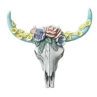قلادة جدارية على شكل جمجمة بقرة، نباتات عصارية، زهور، تماثيل صغيرة على شكل بقرة، منحوتات حيوانية، زينة معلقة للمنزل، ديكور S