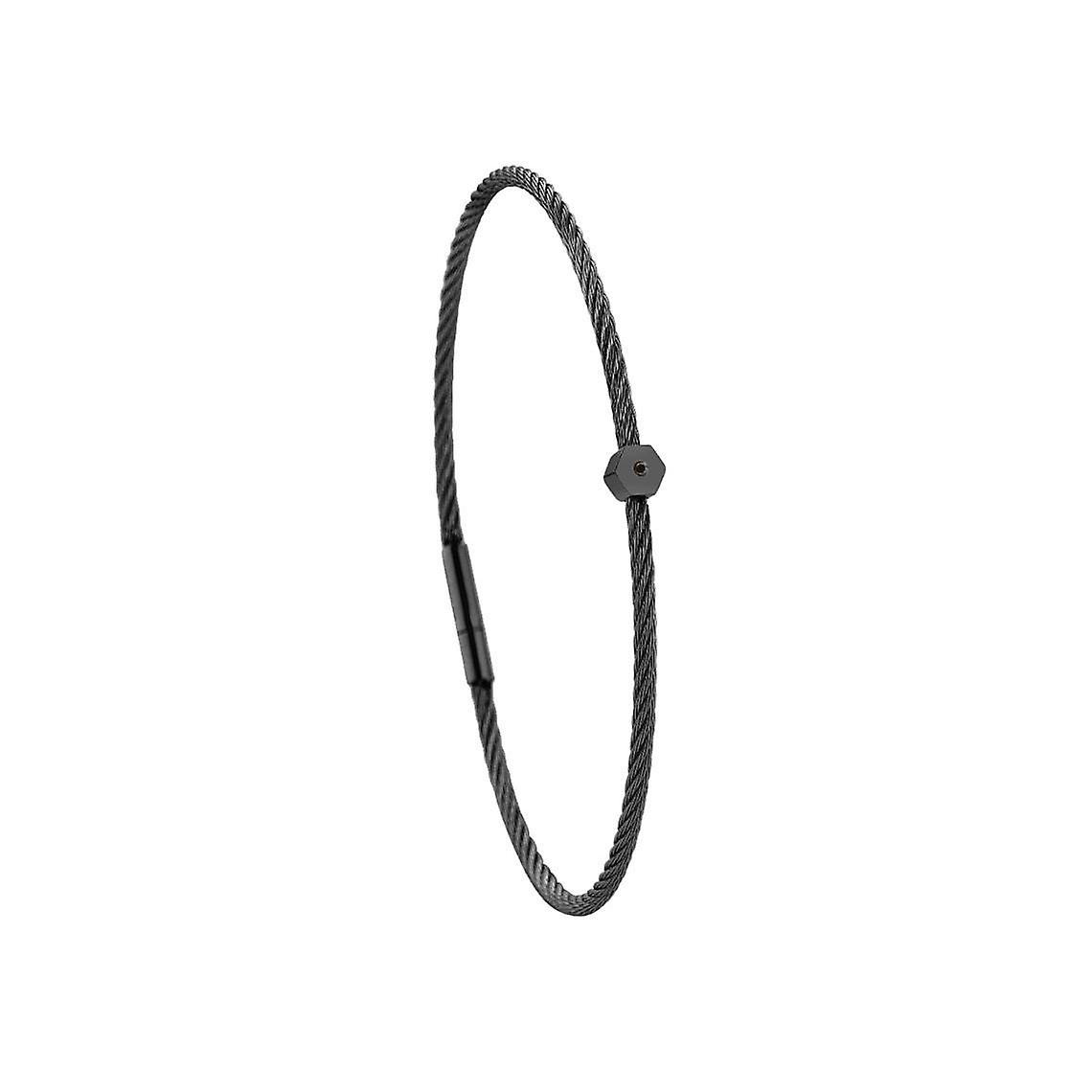 Bracelet acier noir motif hexagone avec diamant noir 1 mm