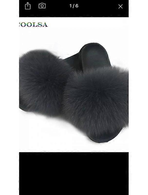 Fluffig Päls Tofflor Vivanilla Mörkgrå Fur Slipper