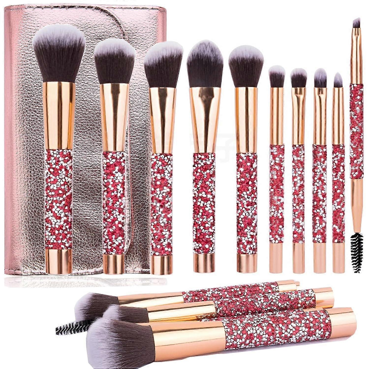 1 Set Rhinestone Makeup Brush Set Professional Beauty Makeup Brushes with Face Makeup Tool Kit (Red)