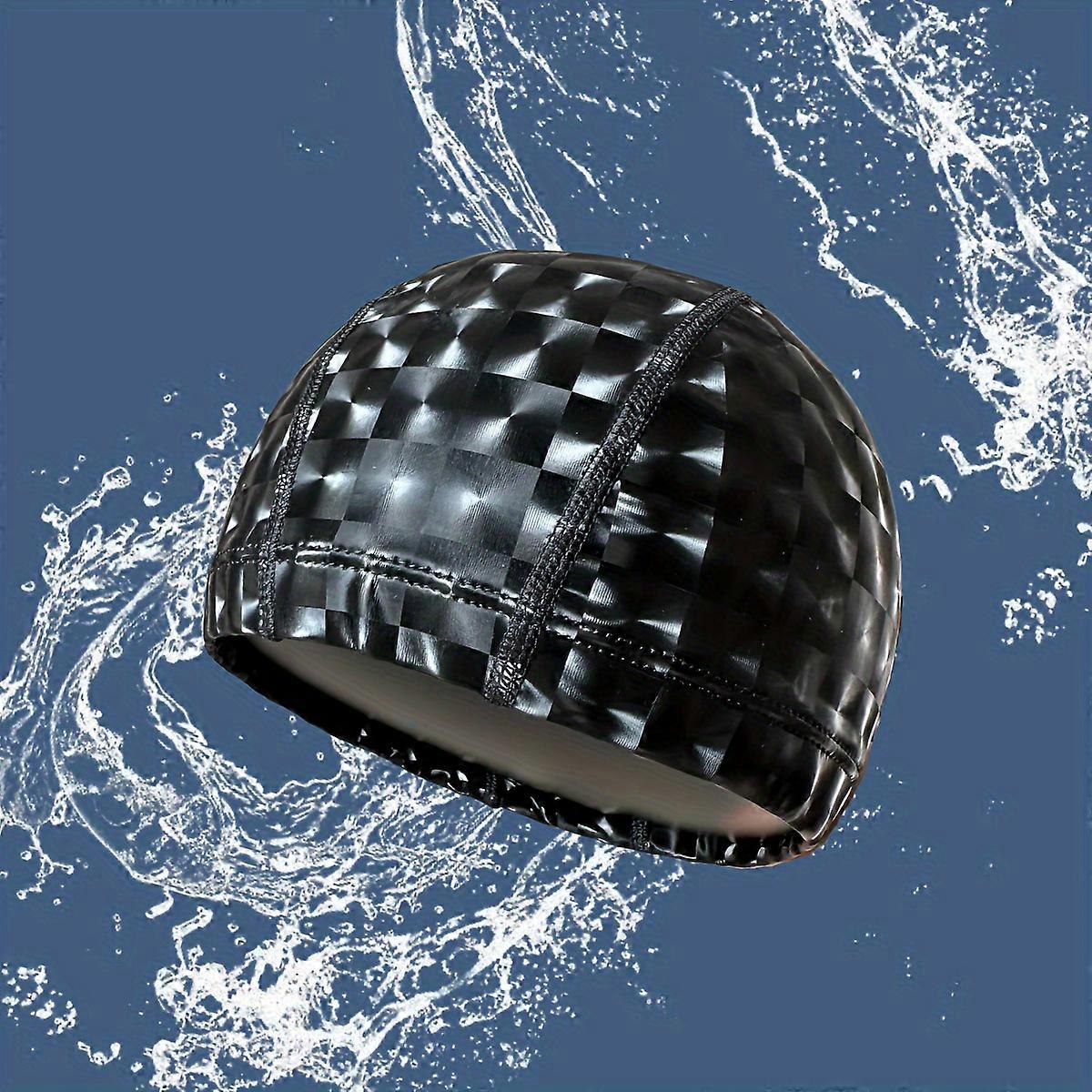 1pc Adult Swimming Cap, Waterproof, Soft And Comfortable Cap With Checkered Pattern, Unisex Swimming Equipment