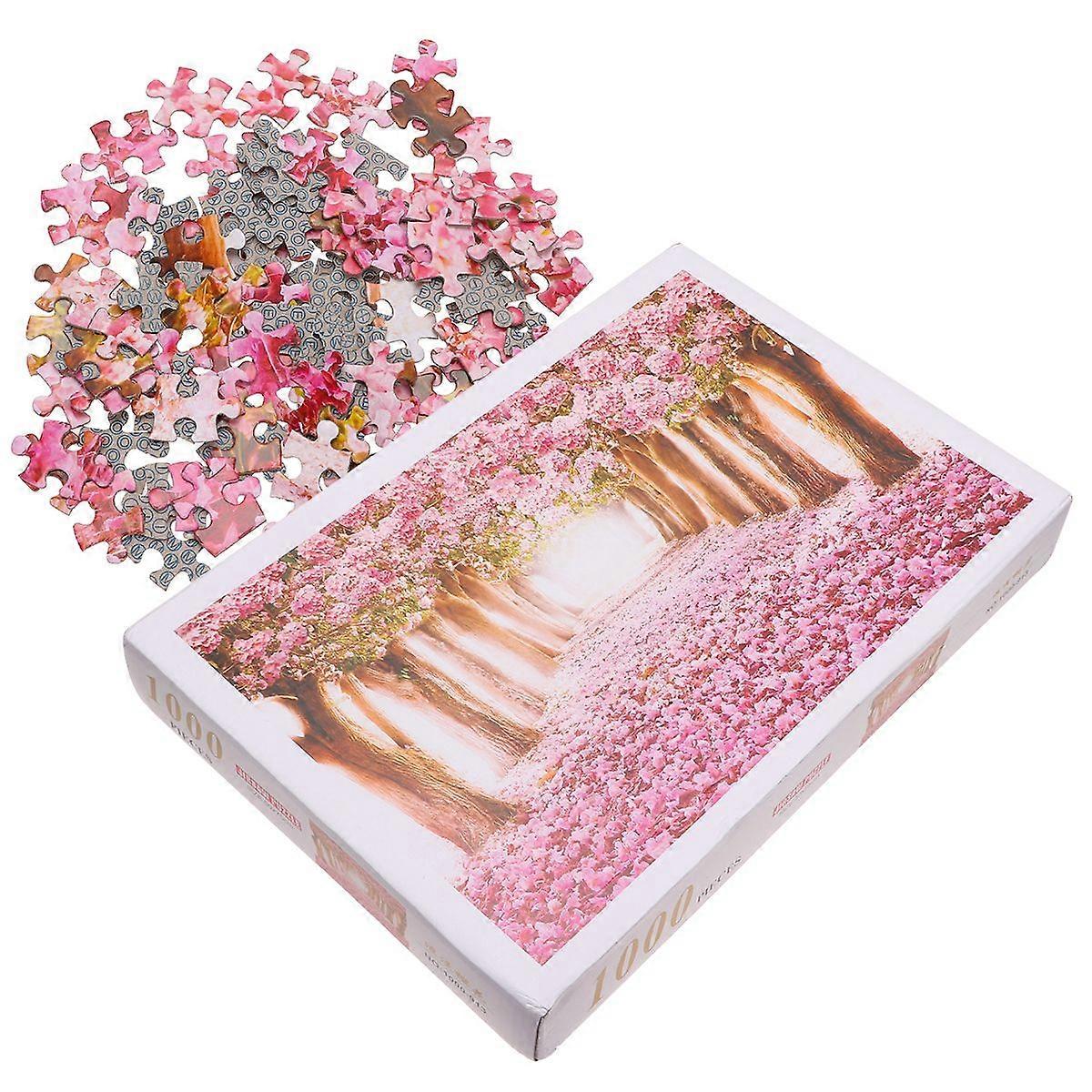 1Pc Cherry Tree Jigsaw 1000 Pieces Cherry Blossom Jigsaw Puzzle for Fun Oil Painting Jigsaw for Adult (Pink)