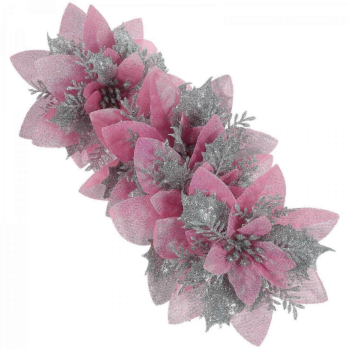 12Pcs Clip-on Artificial Poinsettia Flowers Ideal For Holiday Party Atmosphere In Non-fading Material