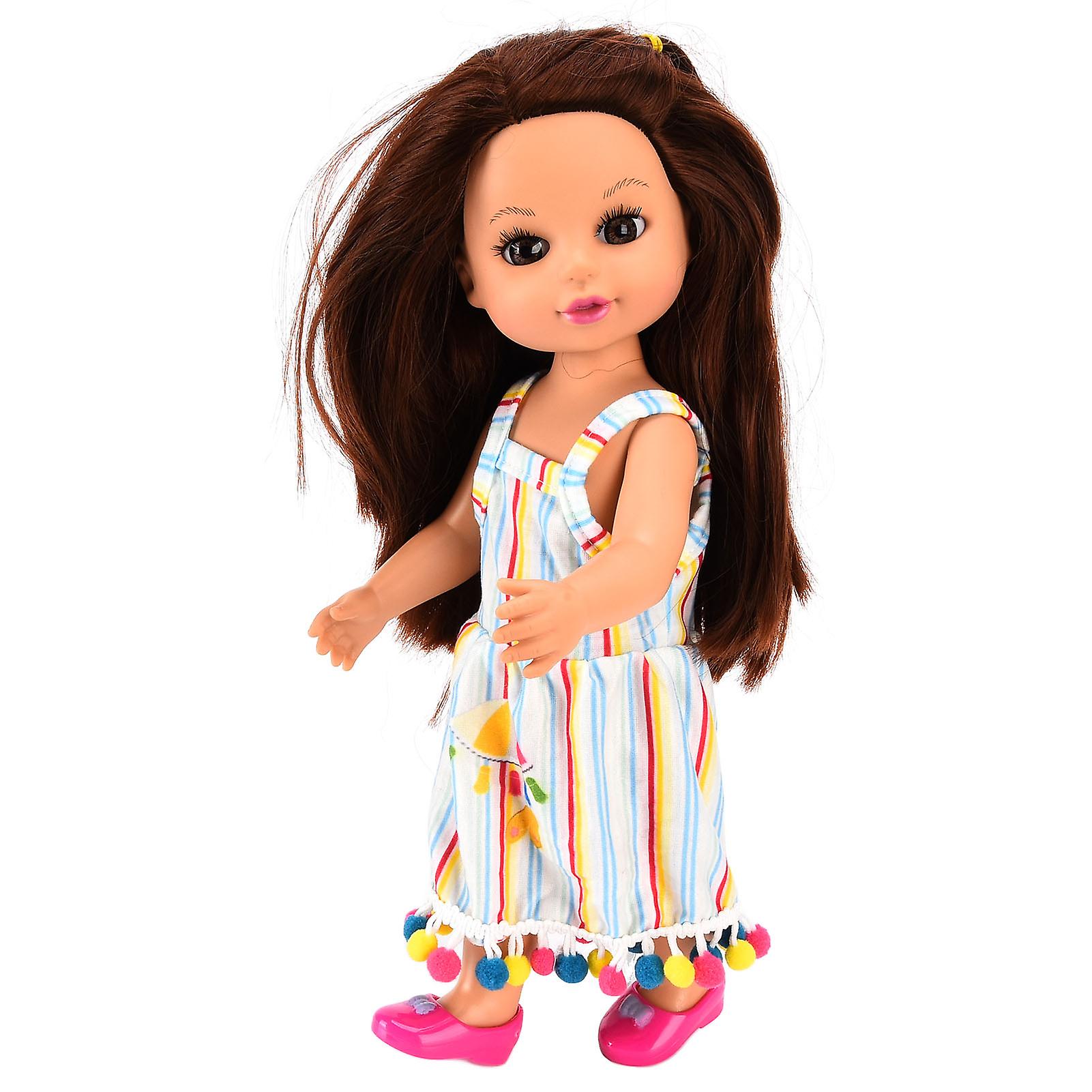14 inch Fashion Girl Doll Colorful Striped Dress Cute Doll Decorative Gift