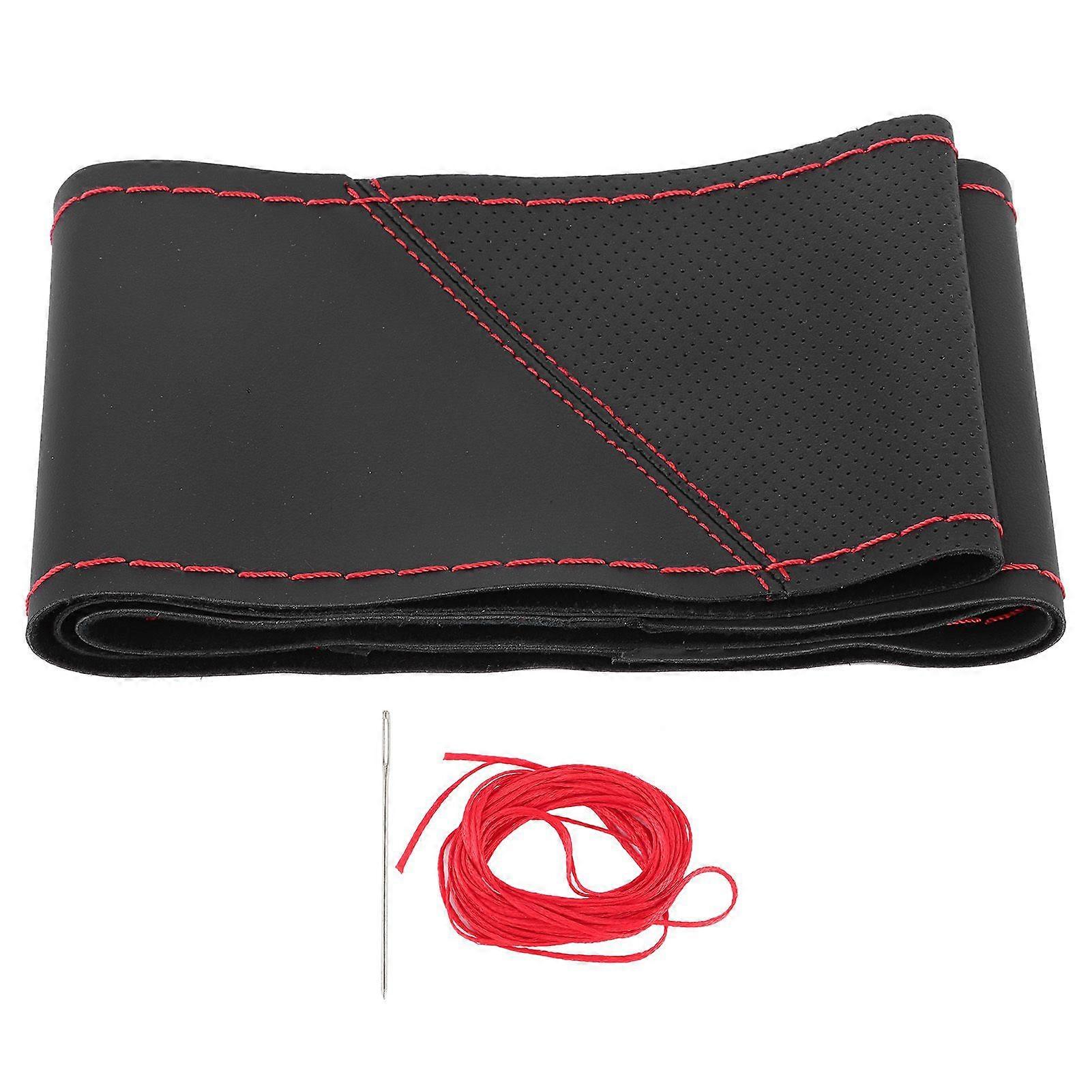 15in Universal Steering Wheel Cover DIY Hand Stitched Perforated Microfiber Leather