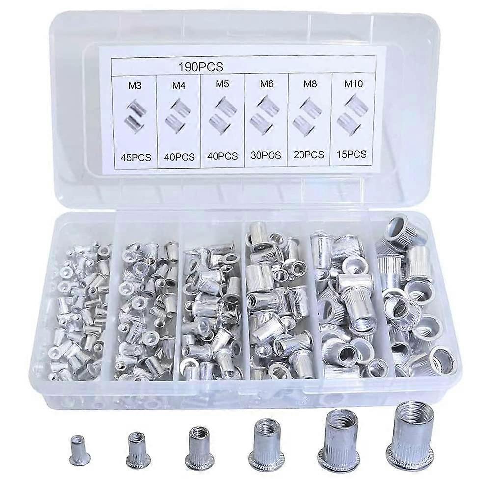 190 Pezzi Flat Head Threaded Rivet,Flat Head Rivet Nut,Flat Head Aluminum Rivet Nut,Blind Insert Nut,Con Scatola Portaoggetti,Per Mobili In Legno,M3/M