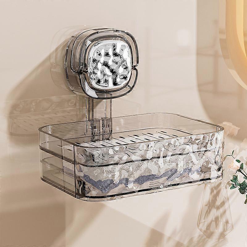1pc Toilet Suction Cup Soap Box Wall-mounted Double-layer Drainage Without Punching Soap Box Storage Rack Bathroom Soap Shelf