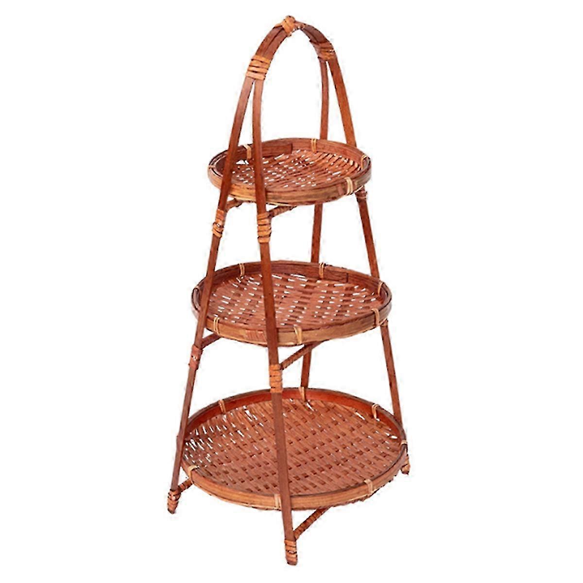 1Pcs Fruit Food Vegetable Bamboo Woven Basket with 3 Layers & Multi-Function Storage - Standing Tray