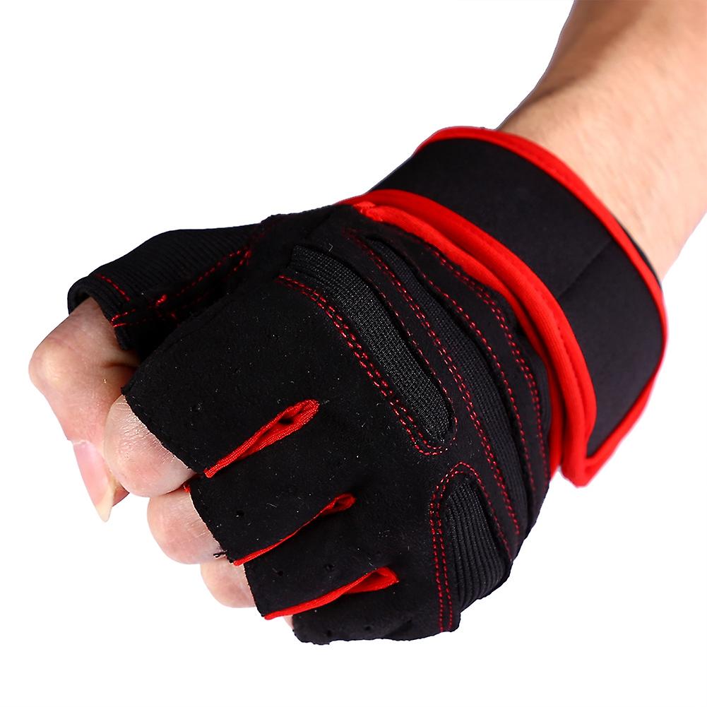 2 Pcs Red Weight Lifting Gloves with Wrist Wraps, Size M-XL