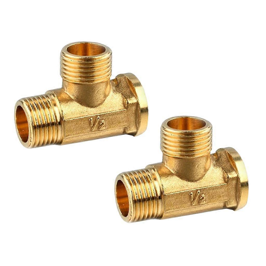 2 Pieces 1/2" Copper Brass Tee Fitting Tube Connector T-Junction Male Female