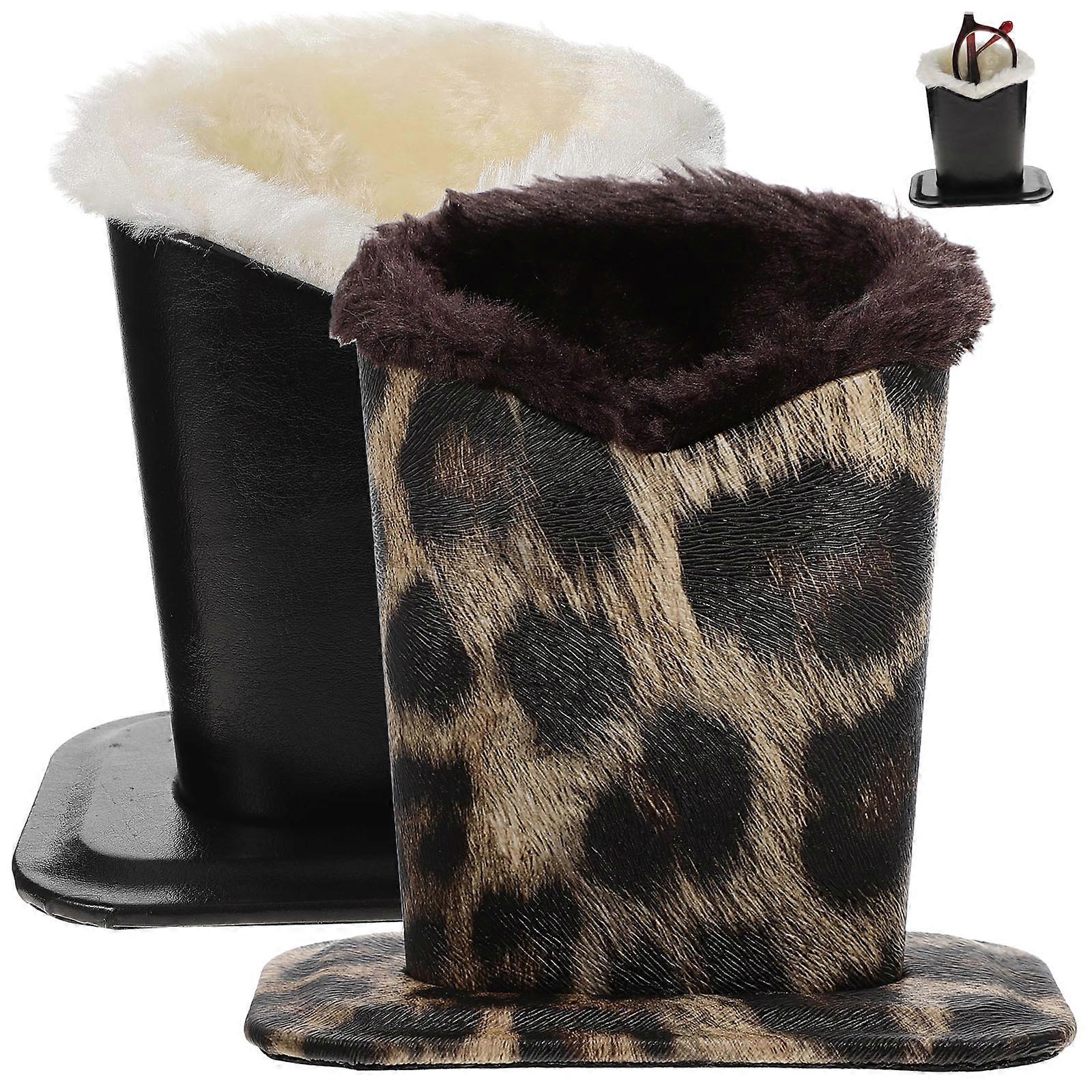 2Pcs Eyeglass Holder PU Leather Glasses Stand Case Desktop Plush Lined Glasses Holder