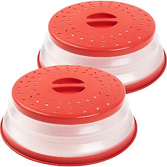 2Pcs Red Collapsible Microwave Plate Cover Colander Strainer for Fruit Vegetables,BAP Free and Non-Toxic