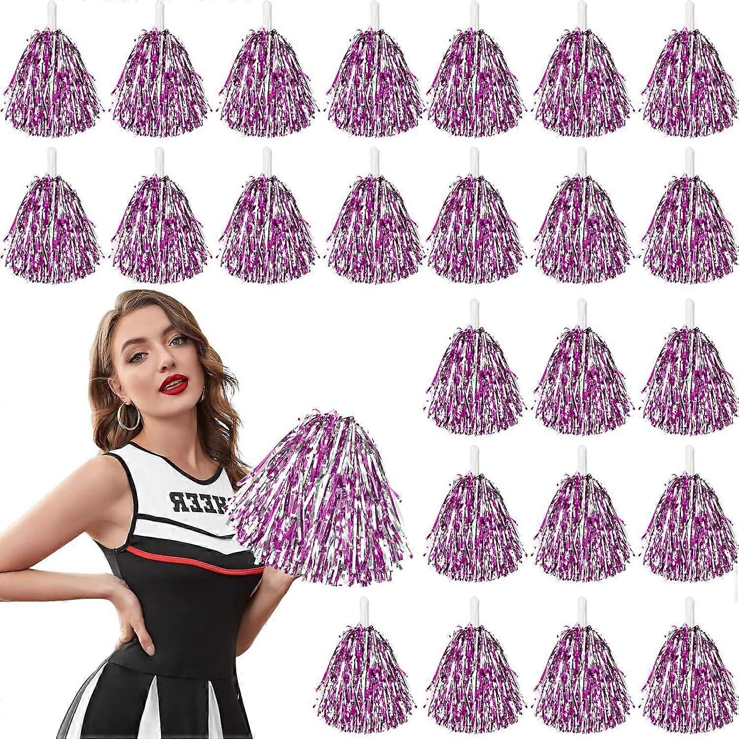 2025 Latest Model 24 Pcs Metallic Cheerleading Pom Poms for Kids, Cheerleaders