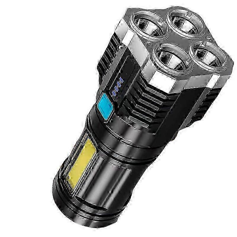 2025 1Set Super Bright LED Flashlight with COB Side Light, 4 Mode USB Rechargeable Torch, with Power Display Function for Camping, Hiking,Snowmobiling