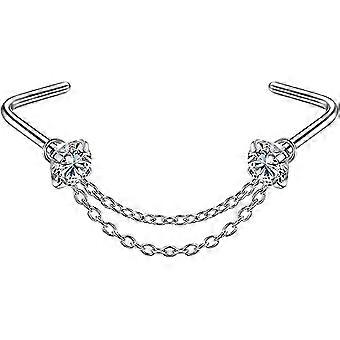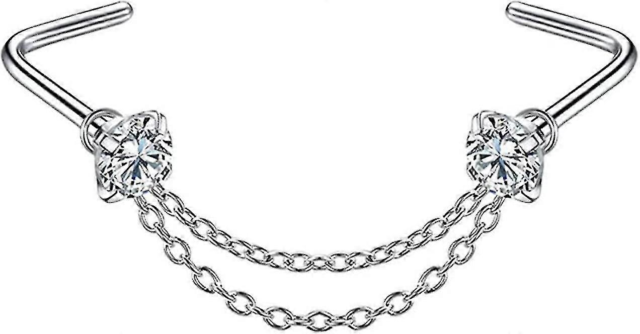 2025 2 Pieces Indian Nose Ring Double Layer Nose Chain Piercing Heart Chain Nose Studs Hypoallergenic Diamond Nose Studs Jewelry Suitable For Women,gi