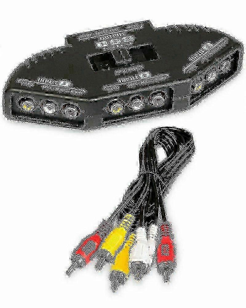 2025 Black 3 Port Av Composite Rca Selector Box Switch Splitter W/ Cable Cord Plug