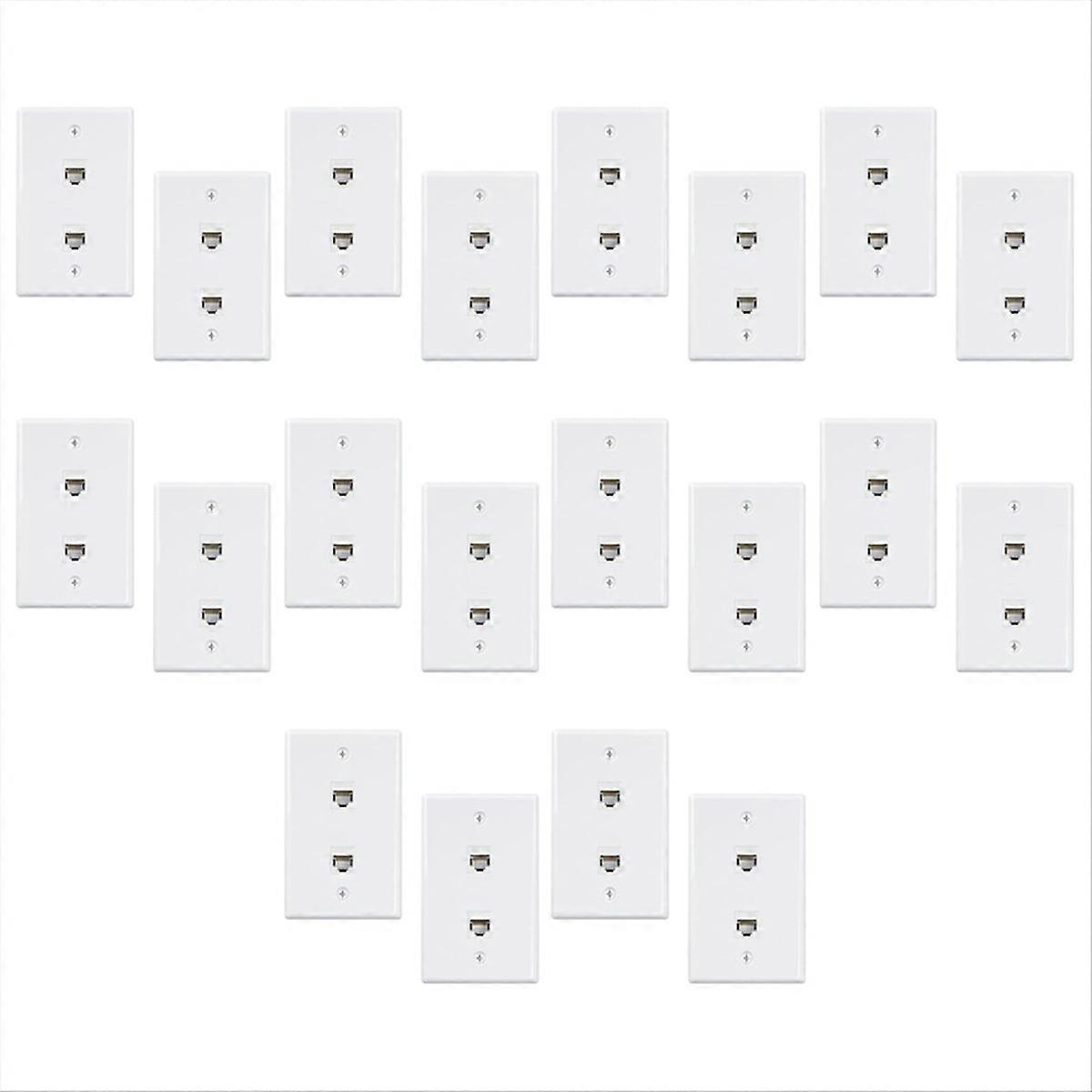 20 Pack 2 Port Ethernet Wall Plate, Cat6 Female to Female Wall Jack RJ45 Inline Coupler Wall Outlet,