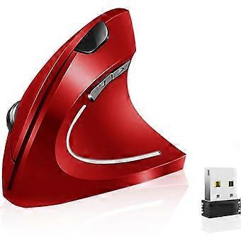 2.4Hz Rechargeable Wireless Vertical Optical Mouse with USB Receiver, 1600 DPI Red.