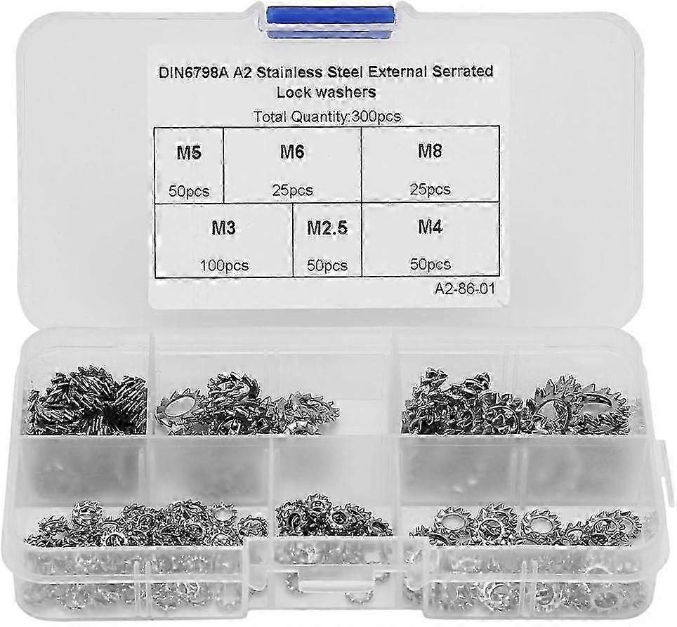 25-26 300pcs / Set External Tooth Lock Washers M2.5 / M3 / M4 / M5 / M6 / M8 Toothed Screw Nut Flat Gasket Assortment Kit