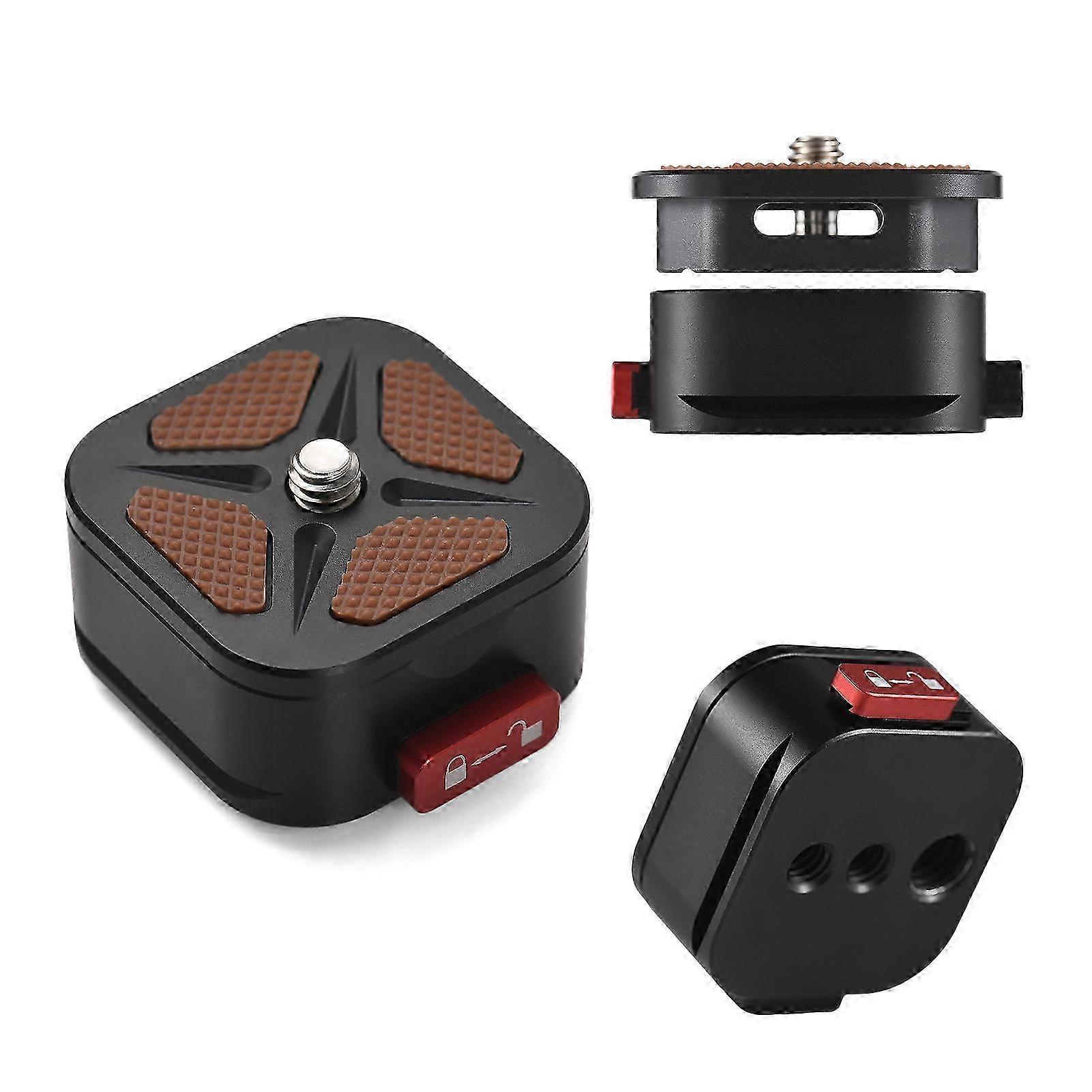 Features 1、【1/4 Inch Screw Connection 】Featuring a standard 1/4 inch screw at the top, this quick release plate is compatible with a wide range of devices including DSLR cameras, digital cameras, sports cameras, and phone holders. 2、【Side Lock Design 】The innovative side lock design allows for quick and easy release of the top plate, making it effortless to remove or attach your camera with just a simple press of the locks. 3、【Various Mounting Ways】 Equipped with bottom 1/4 inch and 3/8 inch threads, as well as a standard 38mm groove design, this quick release plate offers versatile mounting options. Whether you prefer a ball head, tripod, monopod, or selfie stick, this plate has you covered. Specification Features: 【1/4 Inch Screw Connection 】Featuring a standard 1/4 inch screw at the top, this quick release plate is compatible with a wide range of devices including DSLR cameras, digital cameras, sports cameras, and phone holders. 【Side Lock Design 】The innovative side lock design allows for quick and easy release of the top plate, making it effortless to remove or attach your camera with just a simple press of the locks. 【Various Mounting Ways】 Equipped with bottom 1/4 inch and 3/8 inch threads, as well as a standard 38mm groove design, this quick release plate offers versatile mounting options. Whether you prefer a ball head, tripod, monopod, or selfie stick, this plate has you covered. 【High-quality Material】 Crafted from durable aluminum alloy, this quick release plate is built to last. With a maximum load capacity of 5kg and anti-slip rubber pads at the top, you can trust in its safety and reliability. 【Compact and Portable 】Weighing in at just 50g, this quick release plate is compact and lightweight, making it the perfect companion for outdoor photography adventures. Say goodbye to bulky equipment and hello to convenience on the go. Specifications: Color: Black/ Black & Silver Material: Aluminum Alloy Item Size: 4.5 * 3.8 * 2cm/ 1.8 * 1.5 * 0.8in Item Weight: 50g/ 1.8oz Note: Only the quick release plate is included. Package List: 1 * Quick Release Plate Package List 1 * Quick Release Plate Note: Due to the light and screen setting difference, the item's color may be slightly different from the pictures. Please allow slight dimension difference due to different manual measurement.