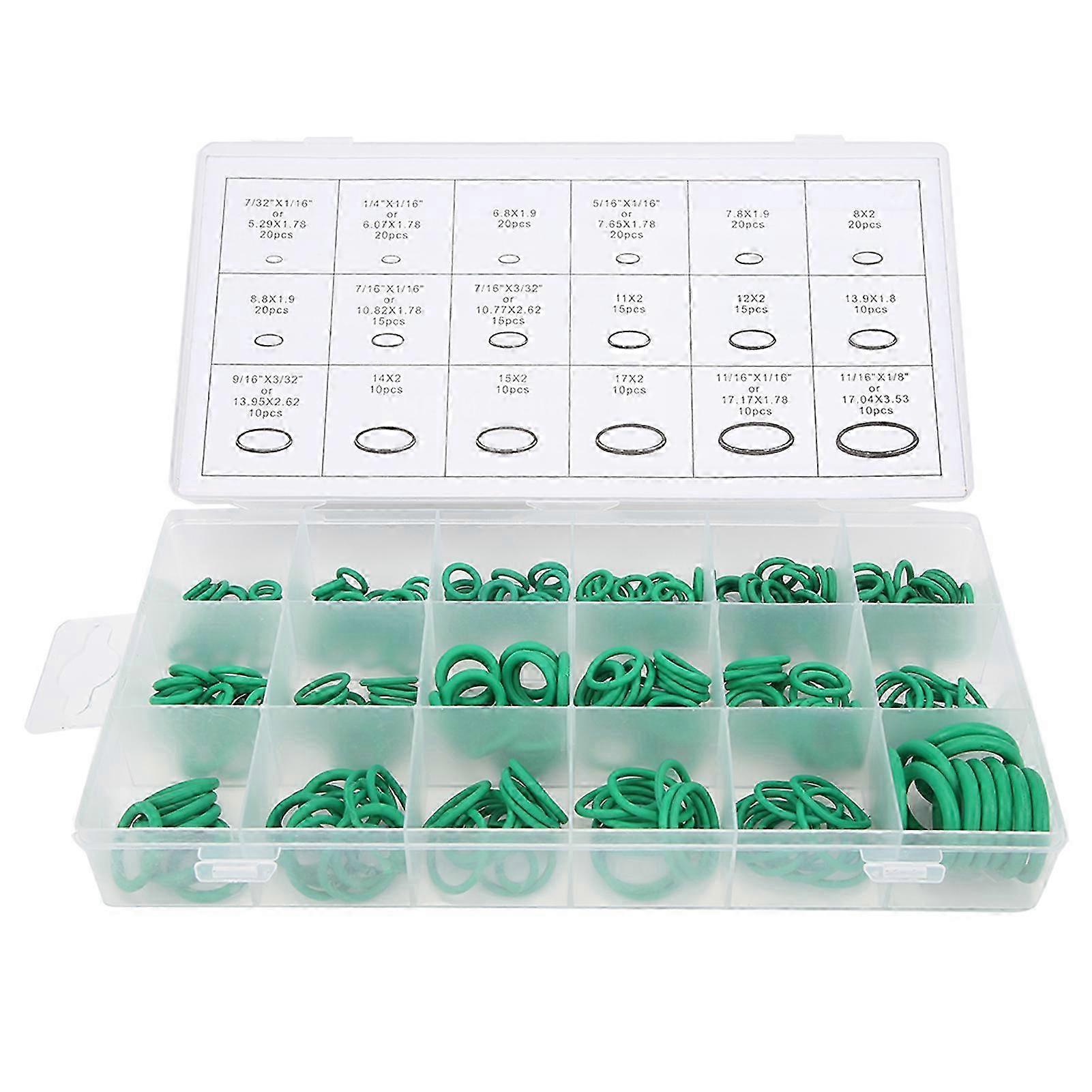 270pcs 18 Sizes Car Air Conditioning Compressor Seals Assortment Kit Green ORing for Water Faucet 25-26s