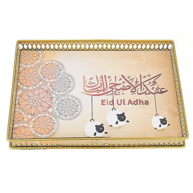 28.5X20.5x4.5cm Golden Serving Trays Eid Dining Table Tray Ramadan Theme Dessert Serving Tray Hollow