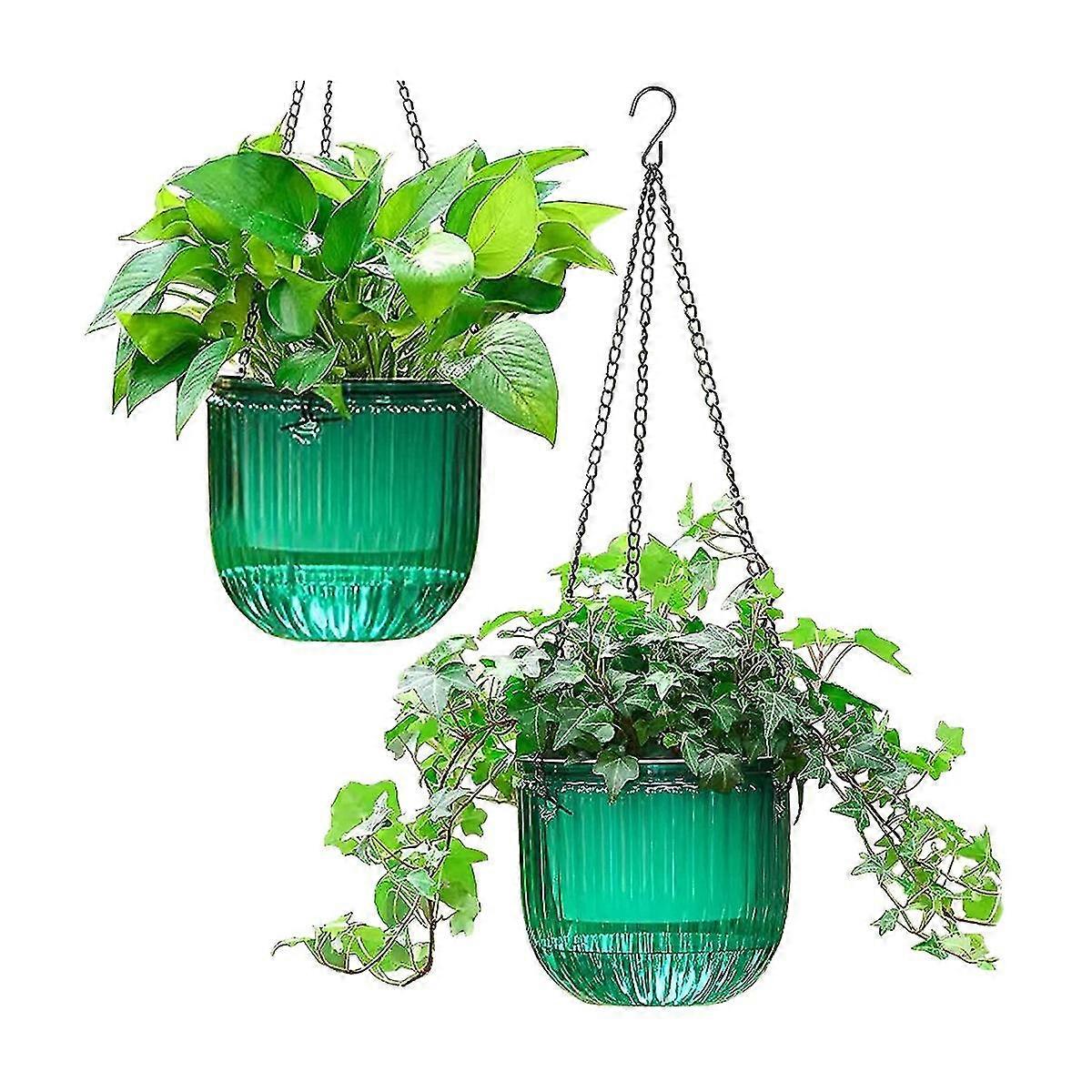 2 Pack Self Watering Planters Indoor Hanging Flower Pots, 6.5 Inch Outdoor Hanging Plant Pot Basket-Yvan