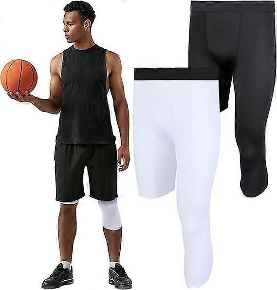 2 Packs Men's 3/4 One Leg Compression Tights Unisex Leggings