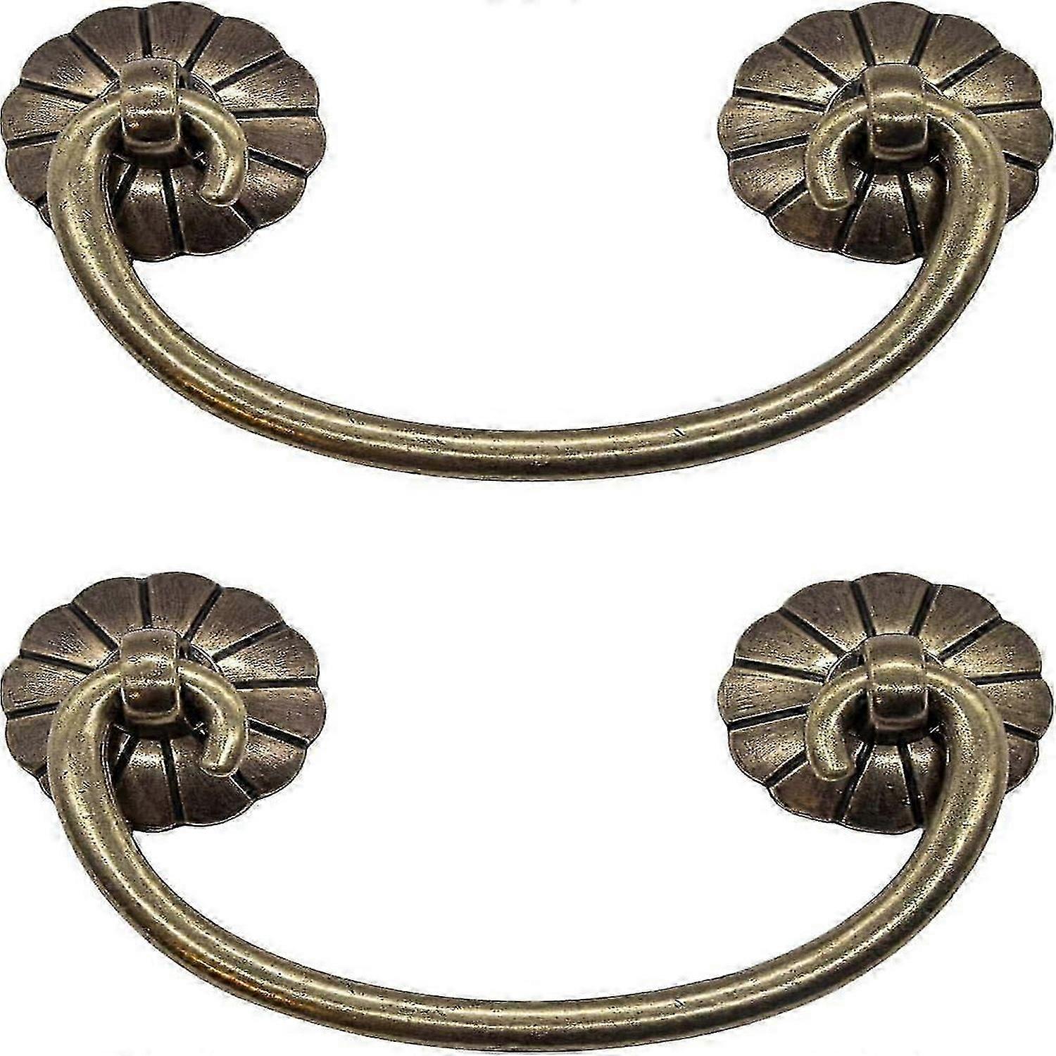 Set of 2 Antique Folding Furniture Handles, Drawer Handles, Cupboard Handles, Folding Handles for Chests, Wardrobes, Dressers, Antique Bronze Brass De