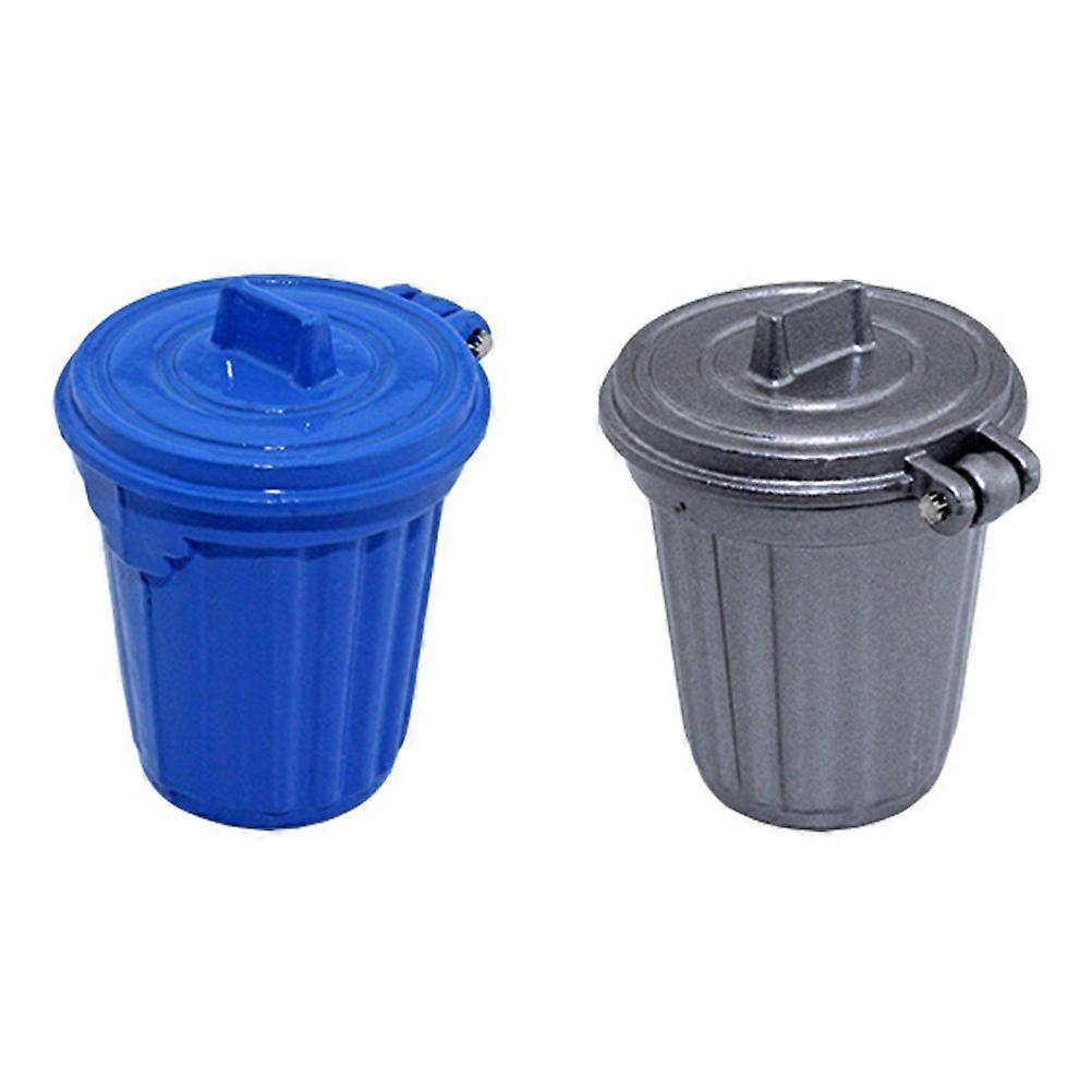 2pcs Miniature Trash Can Model Mini House Simulation Trash Can Silver Blue