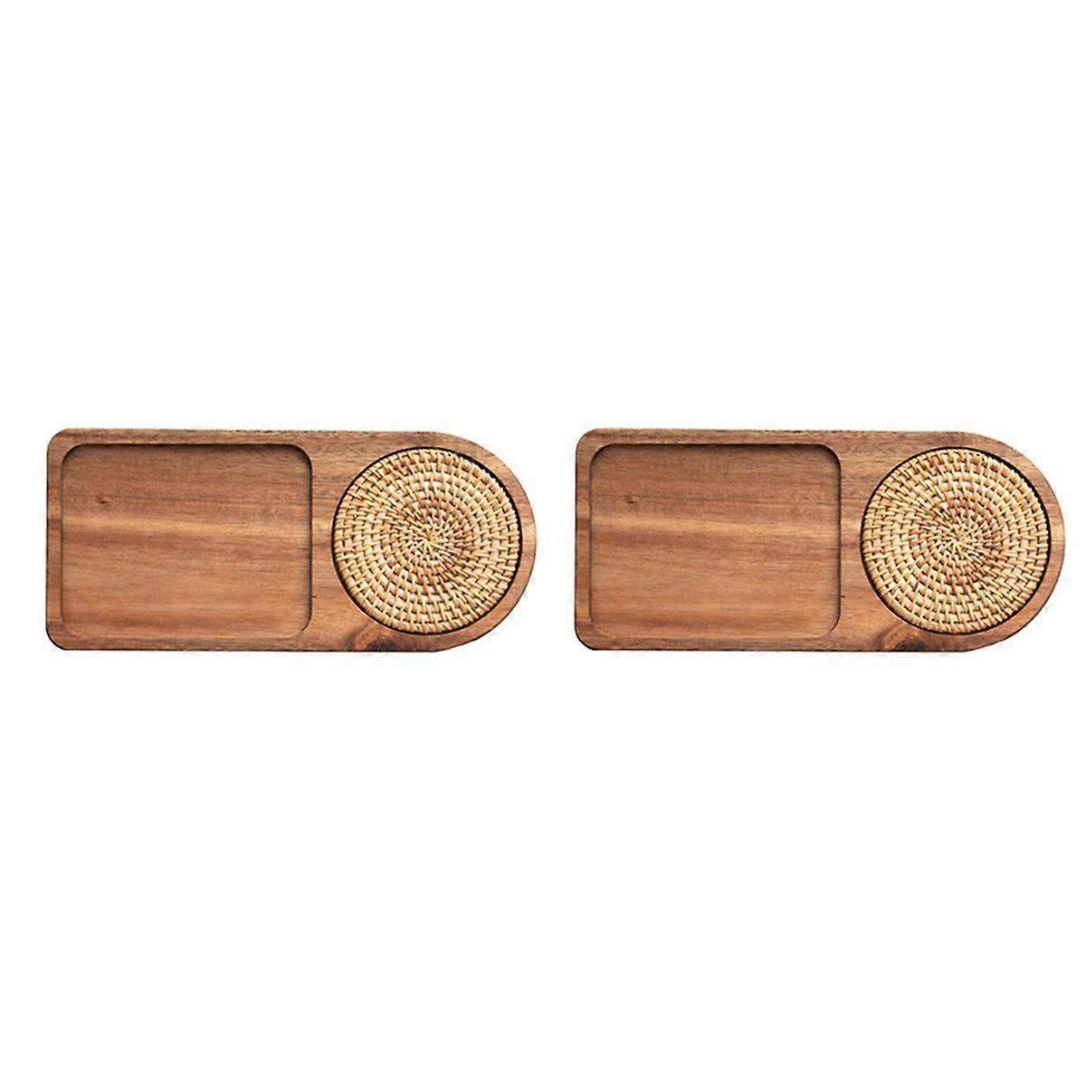 2X Coffee Tray Wood Plate Breakfast Tray for Serving Food Hospitality Coffeeware Teaware Decor Table