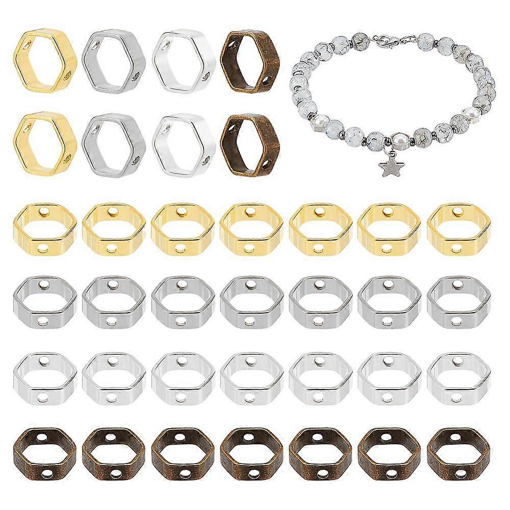 3 Bags 3 Colors Brass Bead Frames Hexagon Mixed Color 6x7x2mm Hole: 0.9mm 20pcs/bag 1 bag/color