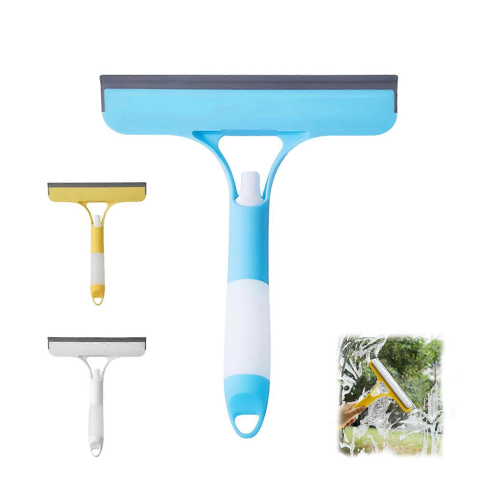 3 in 1 Window Cleaning Scraper Blue, Window Squeegee With Spray For Glass Doors And Shower Glass, Scrape Scrub Wipe