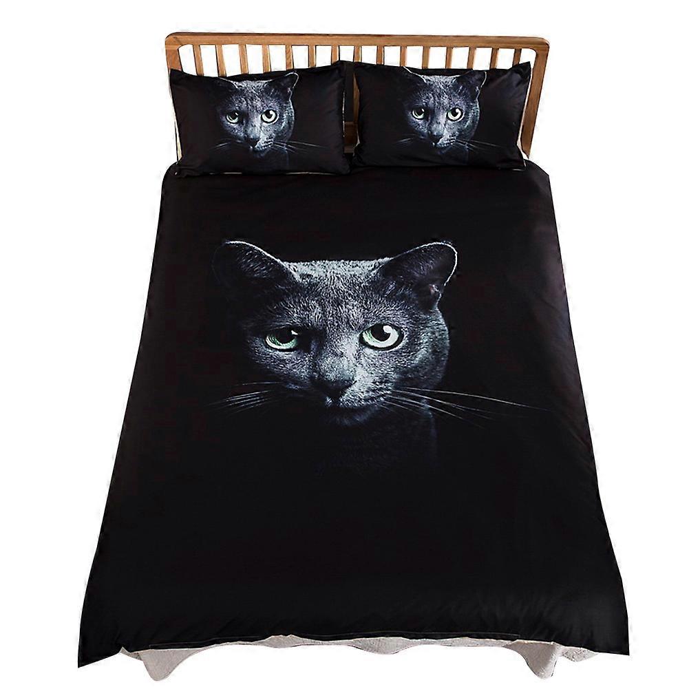 3 Pieces 3D Black Cat Printing Soft Duvet Cover Set Polyester Bedding Set(Twin Size)