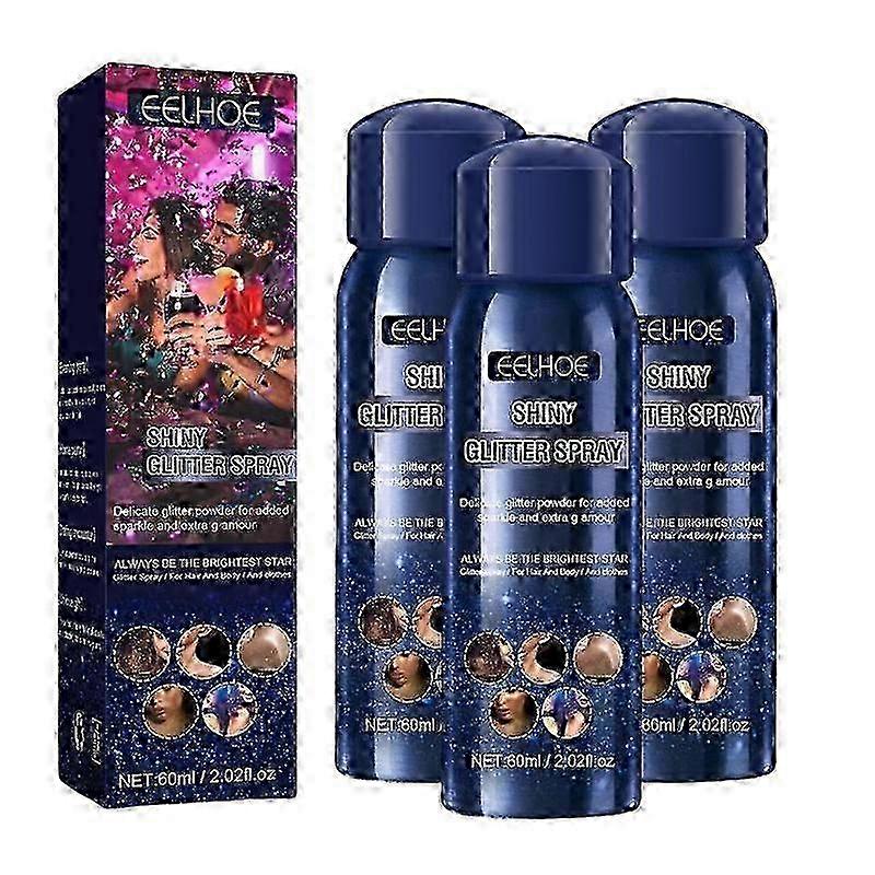 3Pcs 60Ml Shiny Body Glitter Spray Hair Clothes Highlighter Powder Long Lasting Holographic Powder For Party