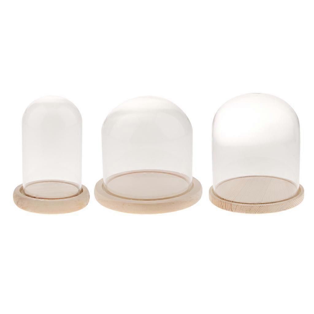 3pcs Clear Glass Dome with Wooden Base Cloche Glass Cover Display Bell Jars