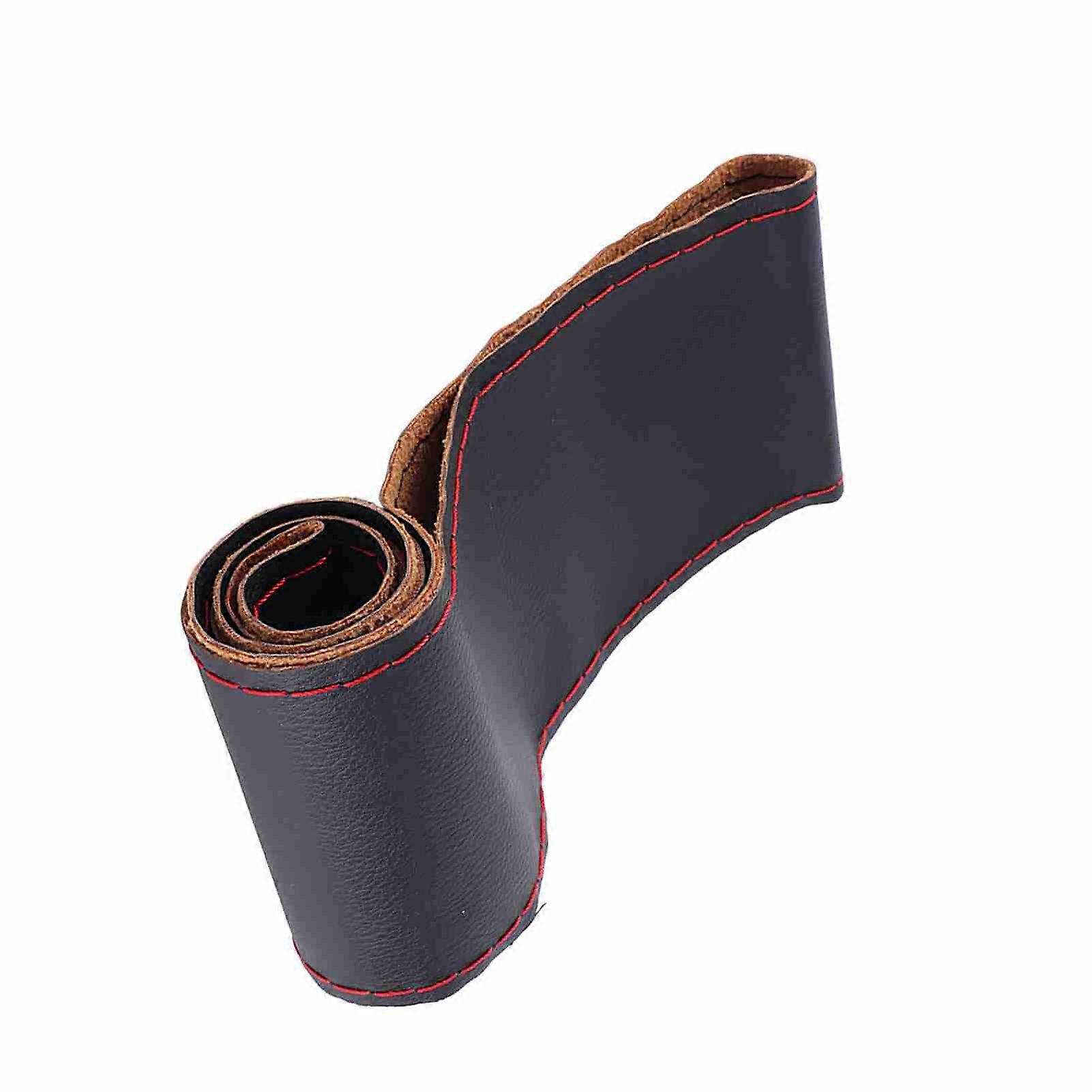 38cm 15in Car Steering Wheel Cover Non-Slip Perforated Leather Hand Stitching Wrap with Needle Thread(Black Red )