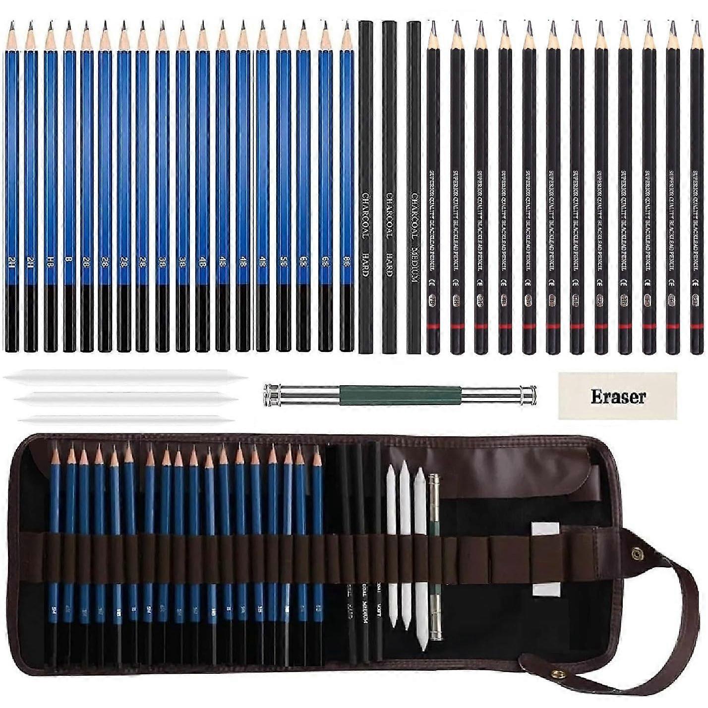 38pc Sketch Drawing Kit Shading Pencils Set Pencil Kit Sketching Pencils with Graphite Charcoal Pencils, Paper Erasable Pen & Rolling Pouch