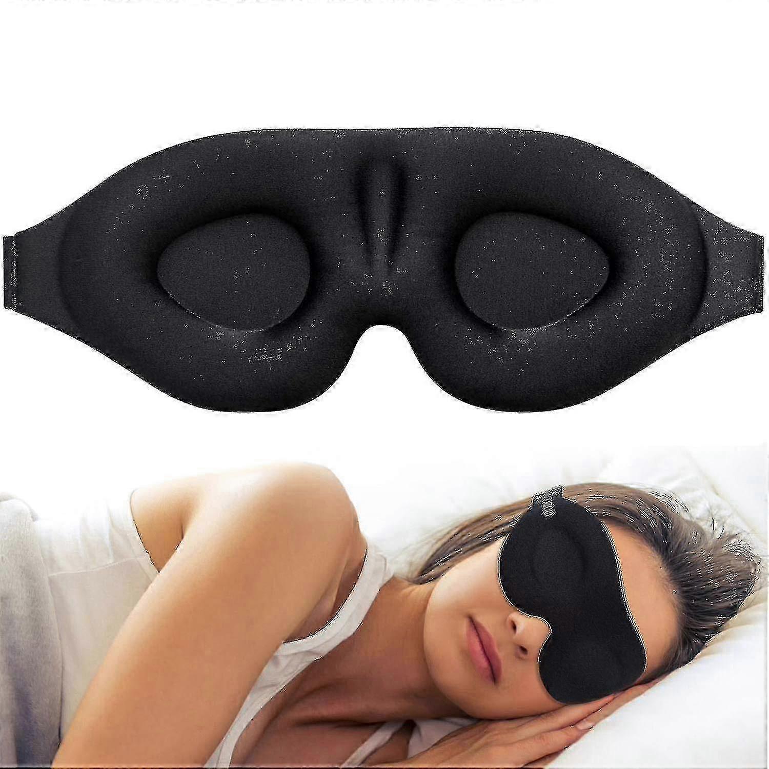 3D Contoured Sleep Mask, Concave Molded Blindfold, Blocks Light, Black, 2-Pack