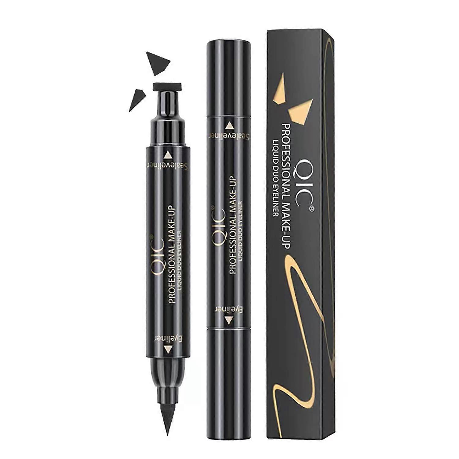 3set 2 Pack Eyeliner Double-Headed Seal Black Eyeliner Triangle Stamp Eyeliner Pen Long-lasting Waterproof Eyes Make with Eyeliner Pencil Makeup Eye L