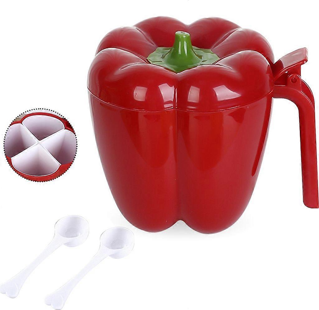 4 in 1 pepper shaped seasoning box with spoon, multi-grid seasoning box, salt and pepper shaker (red)