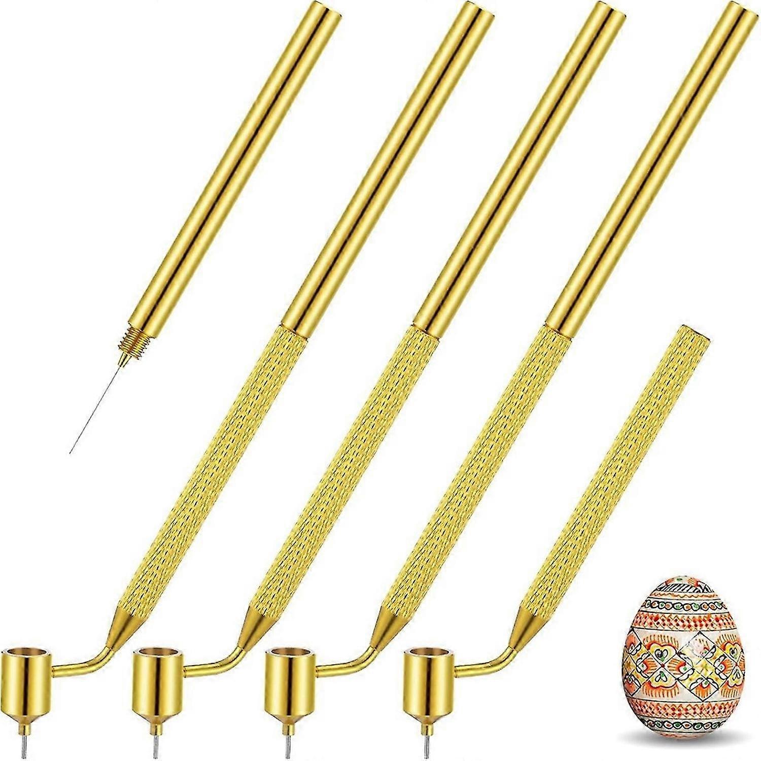 4 Pcs Pysanka Set Wax Drawing Pens for Egg 0.3 0.4 0.5 0.7 mm Medium Metal Hand Wax Pens for Pysanky