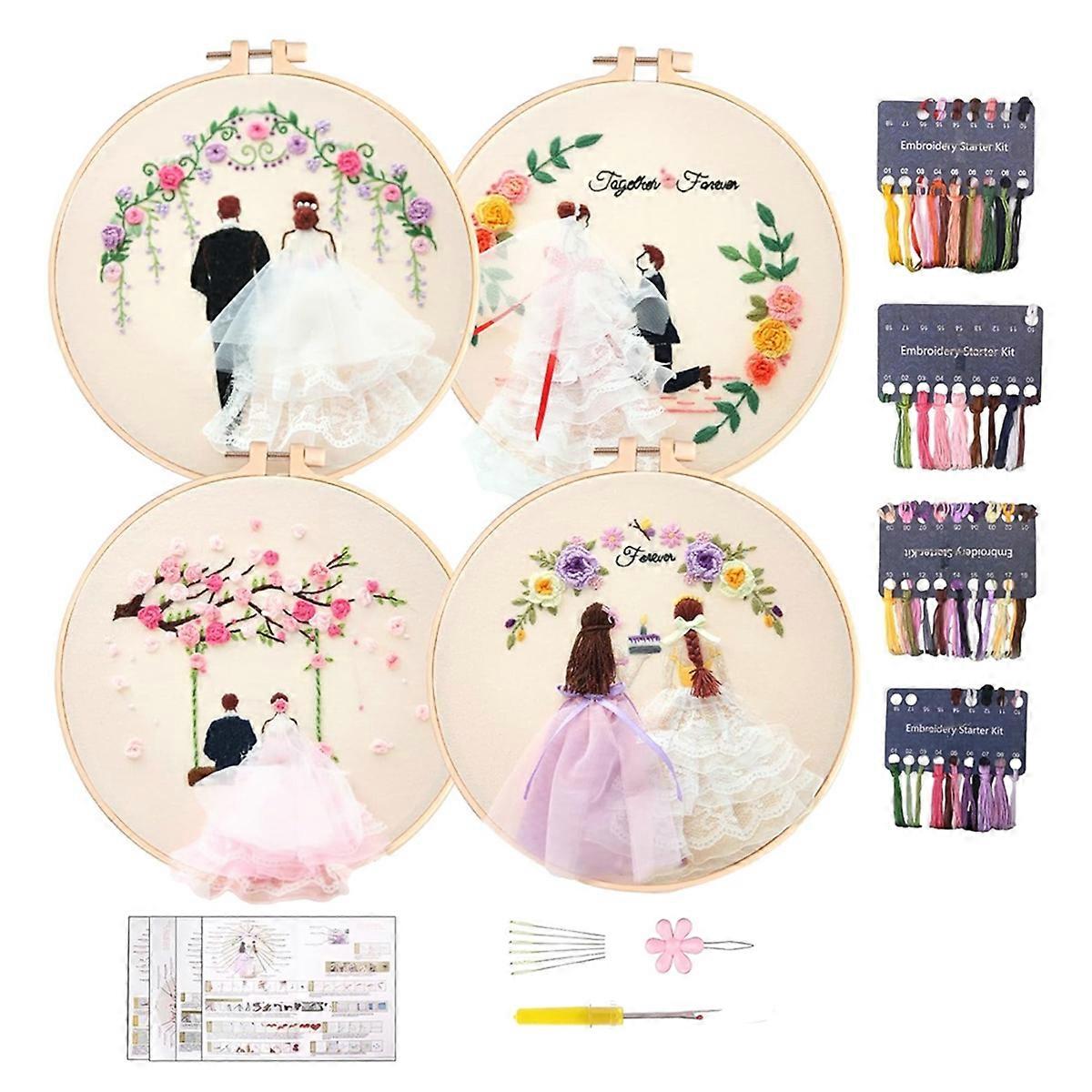 Versatile Usage: These embroidery sets are perfect for creating home decor, clothing accessories, or gifts; You can the embroidery fabrics into various items such as pillow covers, bags, shirts, or scarves, adding a and artistic touch to your home or wardrobe High-Quality Materials: The embroidery fabrics are made of high-quality material that is soft yet , Perfect for embroidery; The printed patterns are clear and fade-, ensuring long-lasting use and preservation and Convenient: The kit includes 4 pre-printed embroidery fabrics with patterns already imprinted on the fabric, making the embroidery process more convenient; You simply need to according to the patterns provided, without the need for designing or drawing on your own Wonderful Gift: If you're looking for a and gift, this embroidery kit is an excellent choice; It not only provides embroidery enthusiasts with an opportunity to explore their creativity but also allows them to experience the joy of crafting handmade items note: The actual object is a material package, and the main picture is a rendering. size: Diameter about 20cm Material: canvas colour: As Shown Package Contents: 4 x Wedding Embroidery Kits With Tool Only the above package content, other products are not included. Note: Light reflection and different displays may cause the color of the item in the picture a little different from the real thing. The measurement allowed error is +/- 1-3cm.