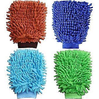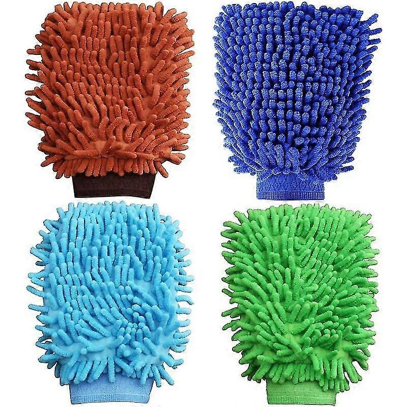 4pcs Microfiber Car Wash Mitt, Chenilla Microfiber Car Professional Mitt Glove For Wiping Car After Washing - SNNGV
