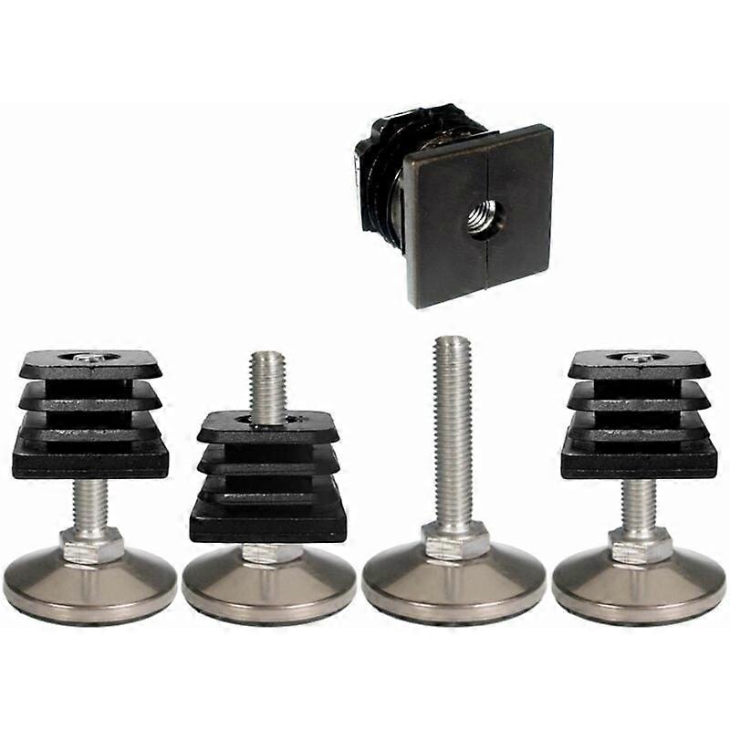 4x Square Retractable End Cap 30x30 Mm With Adjustment Screw With Steel Cape Furniture Leg Chair Shelf Table
