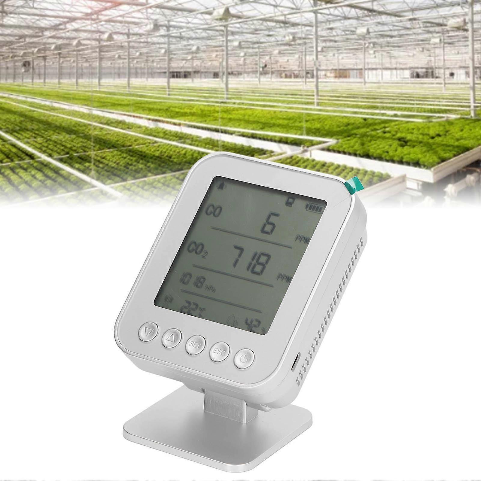 5-in-1 CO₂ Temp Humidity Detector Portable USB Rechargeable Silver